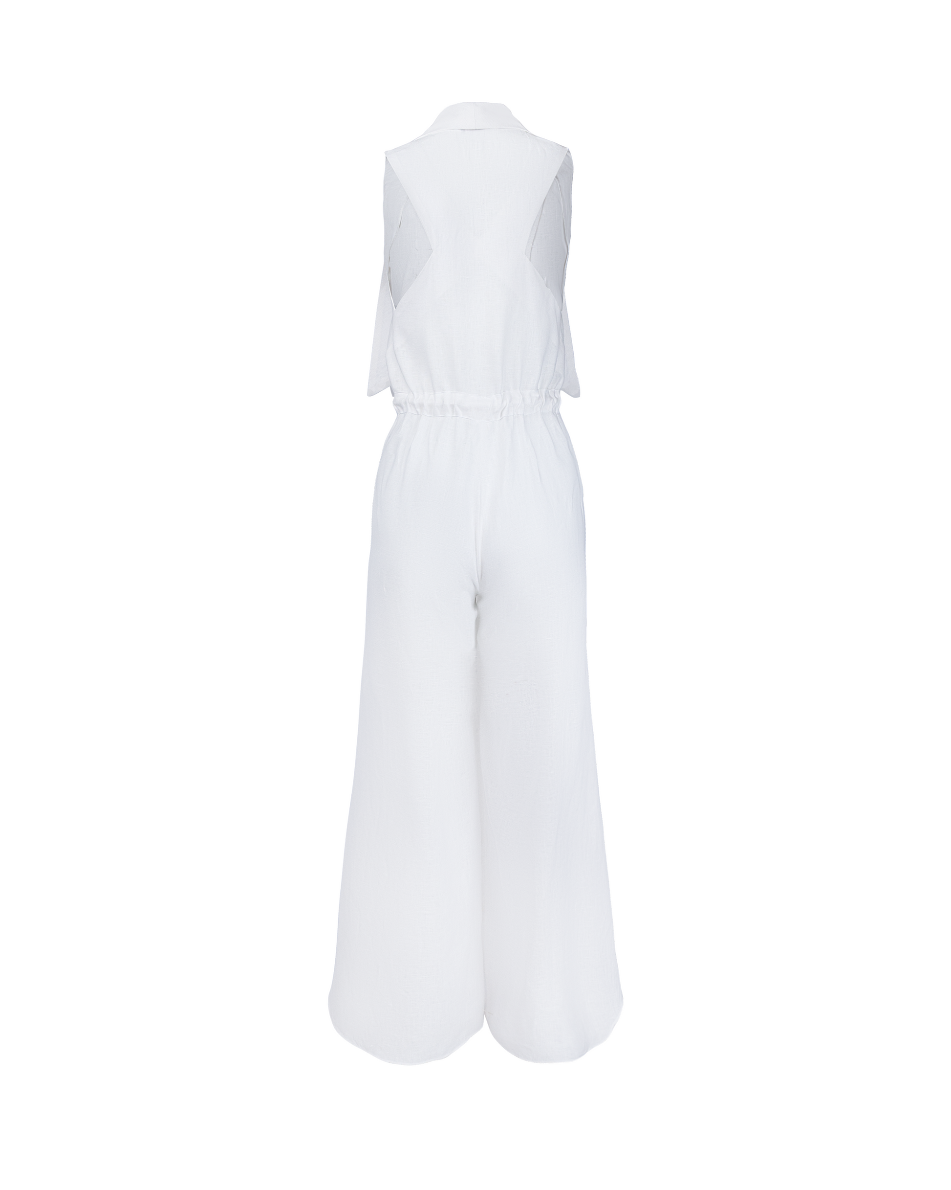 This jumpsuit combines your daring side with the elegance of linen. Its design allows you to enjoy the warmth of the breeze on your body, leaving great adventures to the imagination and capturing everyone's attention.