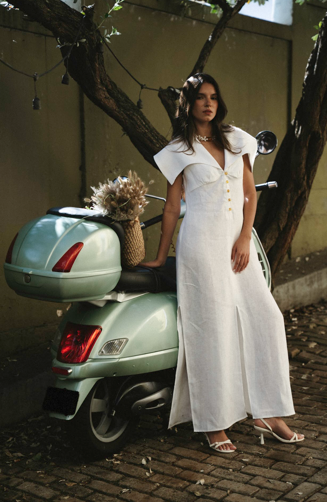 Handcrafted in a luxurious blend of natural fibers, our Vestido Haydee is the perfect combination of sophistication and fluidity. Its structured design at the top, with a wrap collar that adds volume and presence, is balanced by an ethereal and feminine silhouette. Designed to enhance the natural elegance of the wearer, this dress is a timeless piece that evokes distinction with every detail.
