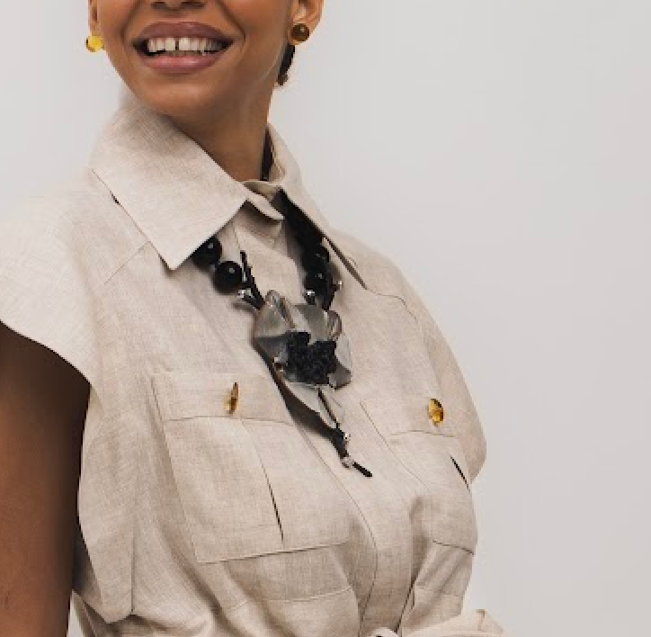 Onyx Necklace with Leather Flower