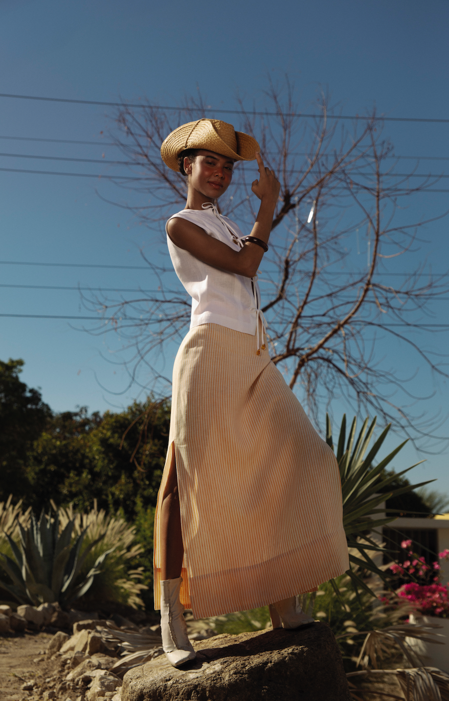 The Luna Skirt is synonymous with natural elegance and comfort. Made from high-quality linen, its fluid and timeless design makes it an essential piece.
