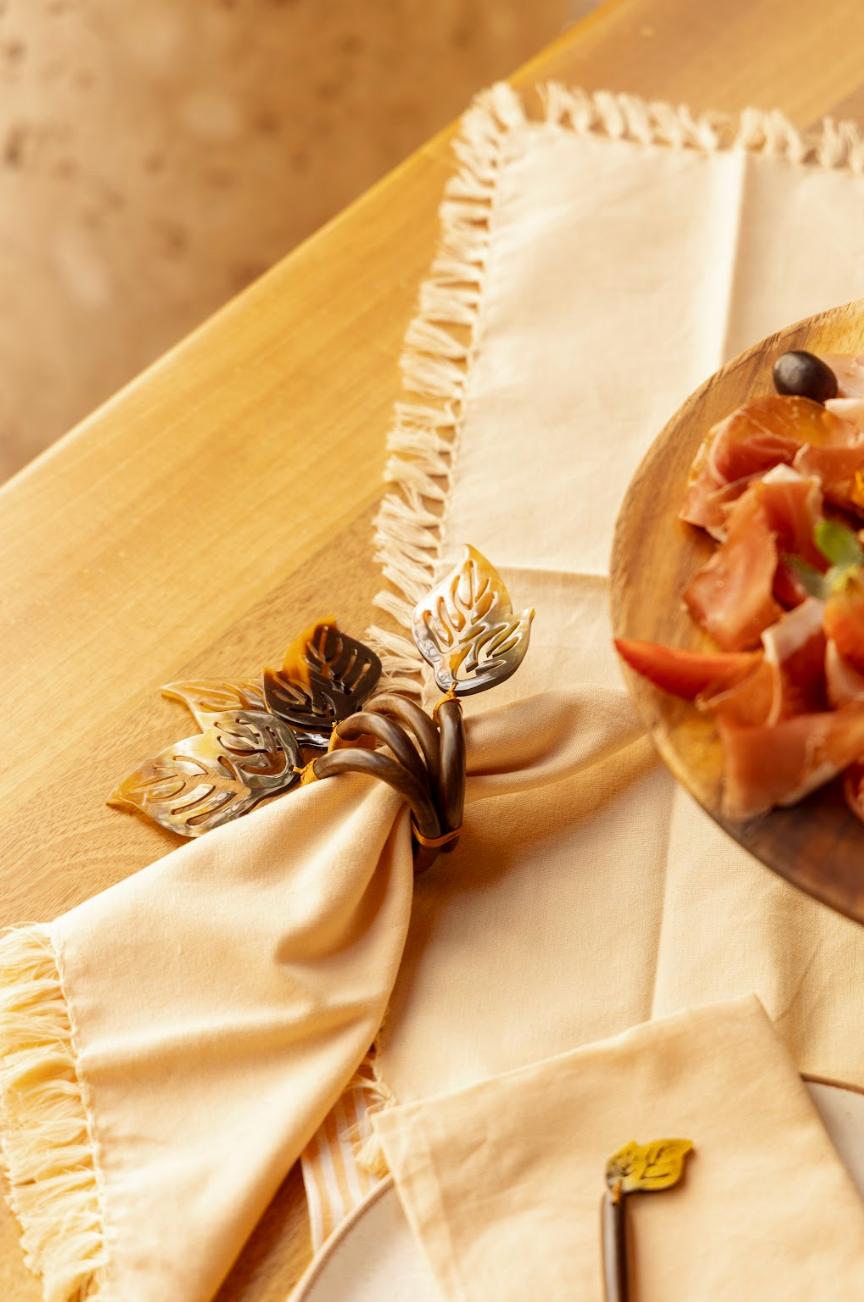 Recibe a tus seres queridos con nuestro juego de 4 servilleteros artesanales en cuerno y detalles en madera de guayacán.