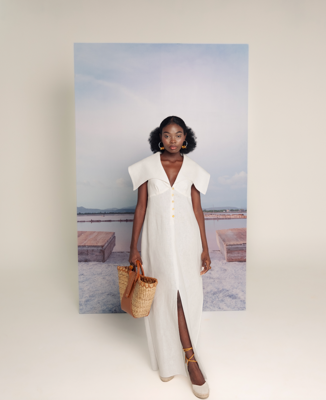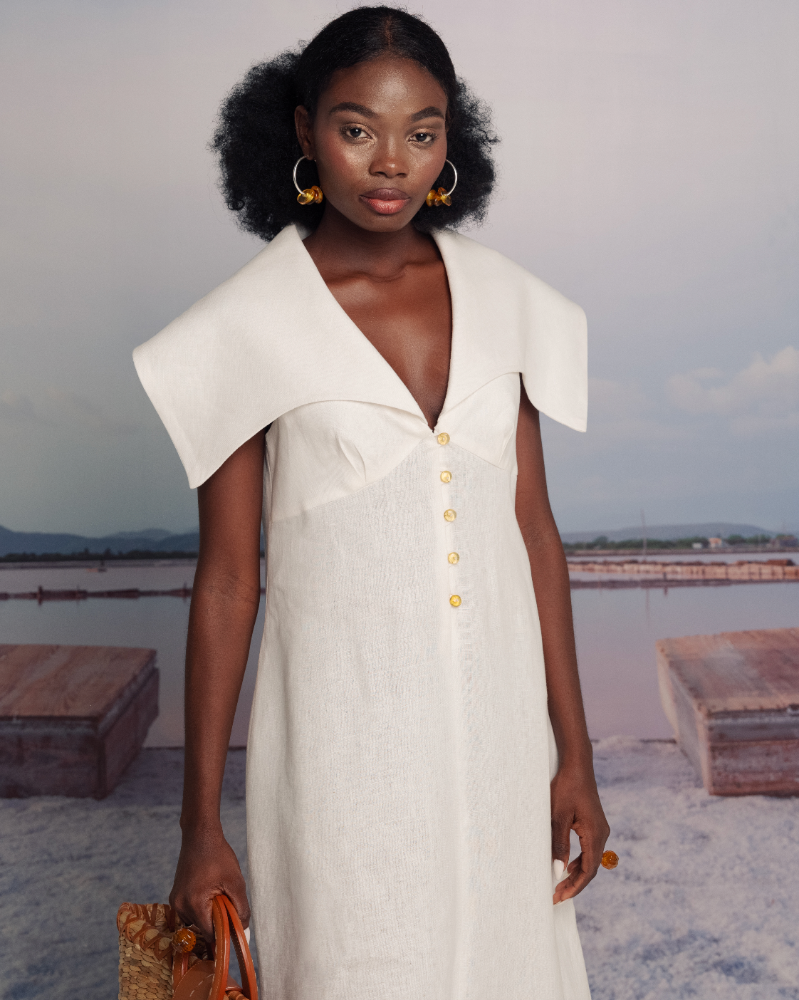 Elaborado a mano en una lujosa mezcla de fibras naturales, nuestro Vestido Haydee es la perfecta combinación de sofisticación y fluidez. Su diseño estructurado en la parte superior, con un cuello envolvente que aporta volumen y presencia, se equilibra con una silueta etérea y femenina. Pensado para realzar la elegancia natural de quien lo lleva, este vestido es una pieza atemporal que evoca distinción con cada detalle.