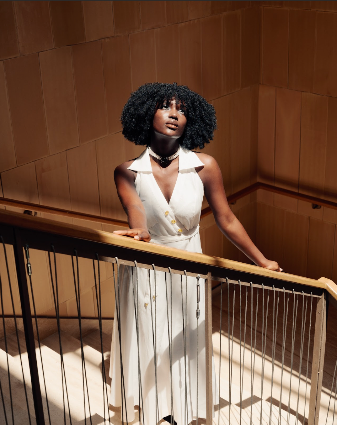 El diseño es elaborado con 100% lino blanco y botones de ámbar.